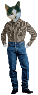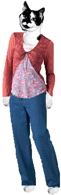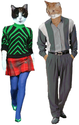 BOOTSY: Lucy, mew shore dew luk com an kool. Doan nuffin scairs mew? LUCY: Knot in dis purrlace Bootsy. I'se tails mew watt bees scairy - Nabor twyin tew moof intew mine haus. Now dat's scairy. |