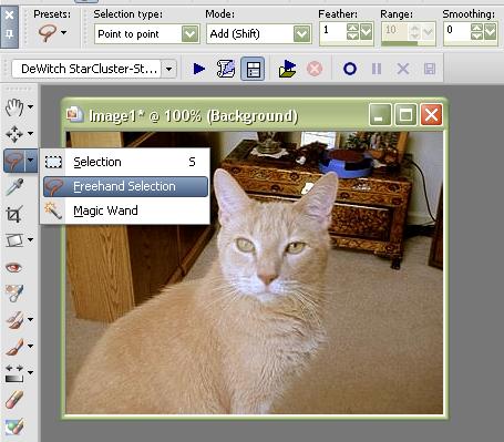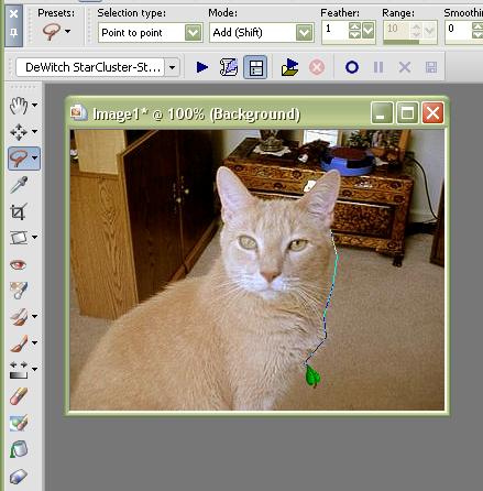 your "freehand selection tool" set at "point to point" with a slight feather (1