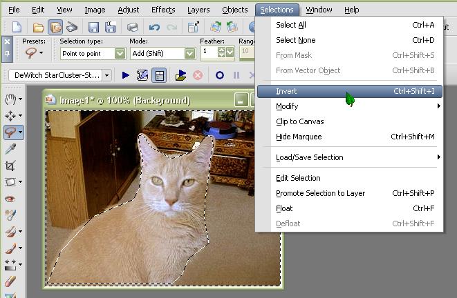 image needs sharpening go back to "Selections" and click "Invert" again.