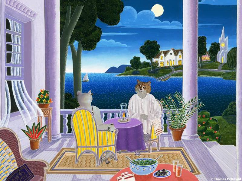 Bini'z gift to Murrf iz a trip to Tahiti - here dey are relaxin'